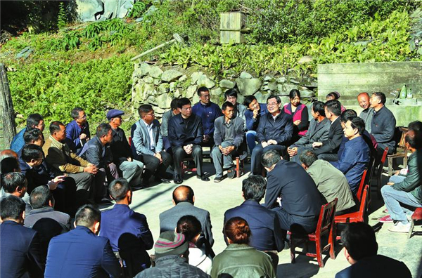 ? (10月10日,省委書記胡和平深入嵐皋縣南宮山鎮(zhèn)西河村,與部分群眾及鎮(zhèn)村干部進(jìn)行座談,了解扶貧工作進(jìn)展,聽取群眾意見建議,與大家一起商討脫貧致富的措施。陜西日報記者 宋紅梅/攝)?