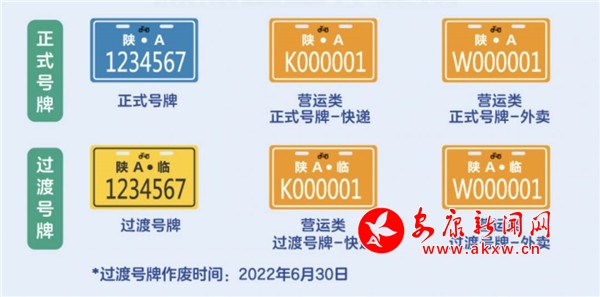 電動(dòng)自行車號(hào)牌號(hào)碼均為7位數(shù)字。正式的電動(dòng)自行車號(hào)牌底色為藍(lán)色,字體和框線為白色;過渡號(hào)牌底色為黃色,字體和框線為黑色。營運(yùn)類號(hào)牌底色為橘色,字體和線框?yàn)榘咨?/span>