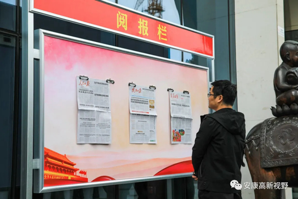 日前,在安康高新區(qū)的市民廣場、政務(wù)中心、公園綠地、大眾餐廳、居民社區(qū)等人口密集區(qū)域,承擔(dān)著“黨報指引方向,閱讀增添力量”宣傳教育功能的一個個“閱報欄”,讓廣大市民在享受物質(zhì)生活的同時更具精神追求,成為創(chuàng)建全國文明城市中一道道亮麗的風(fēng)景。