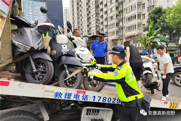 針對(duì)車輛亂停亂放等交通秩序管理問題,執(zhí)法人員對(duì)花園大道、秦嶺大道、學(xué)府路、高新四路等主次干道沿線開展全天候整治,并向沿街商戶下發(fā)摩托車、電動(dòng)車規(guī)范停車告知書。對(duì)占用人行道、消防通道、公交泊位等行為進(jìn)行拍照取證后強(qiáng)制拖移。同時(shí),向市民群眾發(fā)放文明交通宣傳彩頁(yè),引導(dǎo)大家自覺摒棄交通陋習(xí)、遵守交通法律法規(guī),安全文明出行。