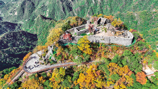 全勝寨位于我市嵐皋縣民主鎮(zhèn),是一個隱于群山、建于絕壁之上、保存完整的古山寨群落。古寨遺存的多處石砌城墻和戰(zhàn)壕錯落有致,延綿數(shù)公里,為秦巴山區(qū)所罕見。據(jù)當?shù)厥分居涊d,此寨始建于明末,是當?shù)孛癖姙槎惚軕?zhàn)亂而建。因山寨抵御多次外來侵擾,屢獲全勝,故名“全勝寨”。這里平均海拔1300至1500米,是陜西省第七批文物保護單位,也是目前我省保存較為完好、歷史戰(zhàn)績輝煌的寨堡,同時也是重要的革命歷史舊址。對于研究明、清、民國時期嵐皋歷史文化和寨堡建筑具有重要價值。(袁法 攝)