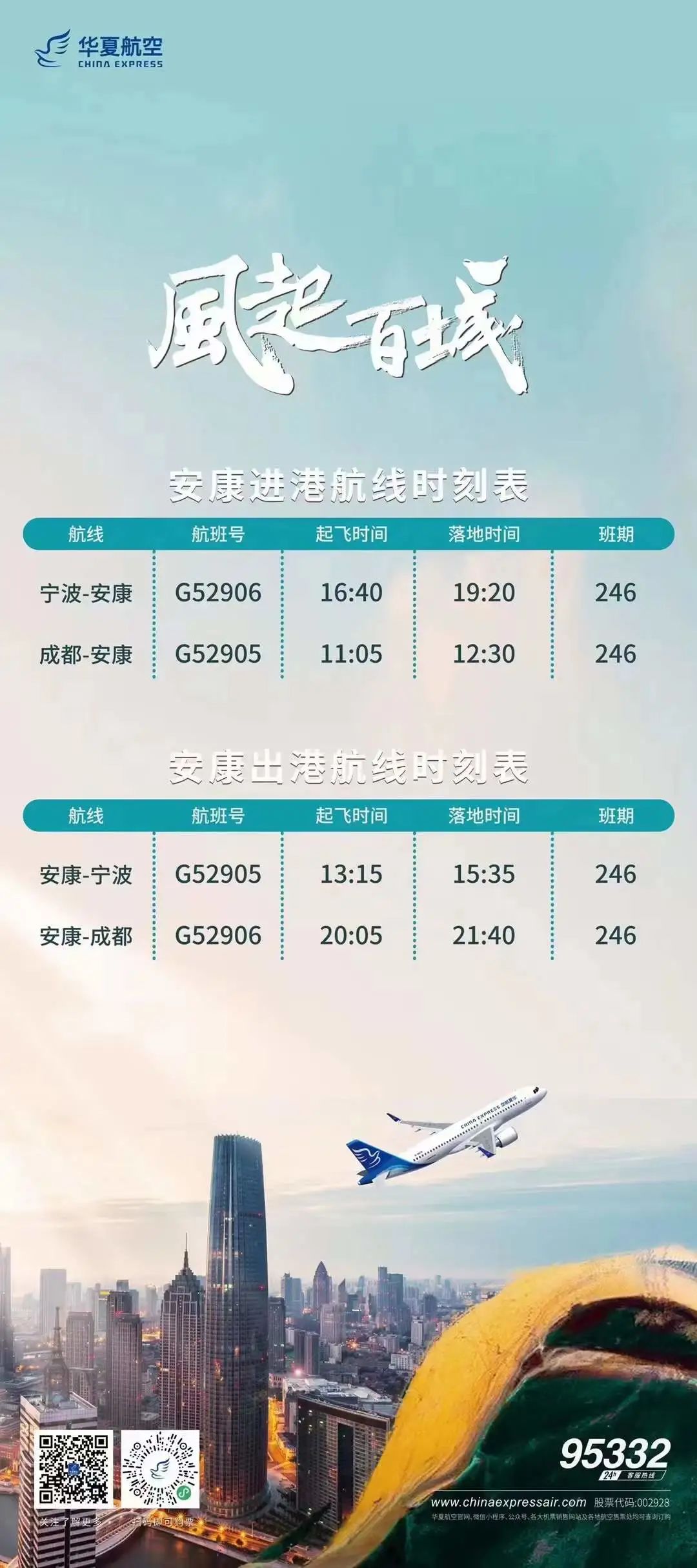 8月2日,據(jù)安康富強(qiáng)機(jī)場消息,8月15日起,安康將開通成都-安康-寧波航線,具體航班信息如下圖: