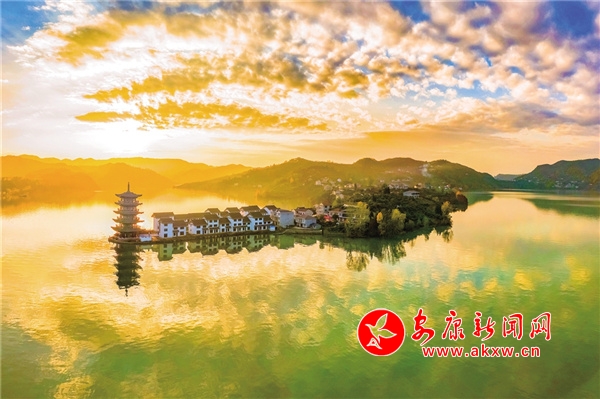 在瀛湖,冬日里的暖陽往往午后才露出羞澀的笑臉。聽說清泉老碼頭新打造了一座古香古色的小鎮(zhèn),與四周的群山和這里的大湖面渾然一體,美麗壯觀。11月下旬的一個下午,待云霧慢慢散開,我和紀(jì)平、世軍驅(qū)車來到清泉老碼頭。過去,這個碼頭是跨漢江通往玉嵐的必經(jīng)之地,也是嵐河與漢江的交匯處。火石巖電站大壩蓄水后,這里呈現(xiàn)出瀛湖最開闊的湖面,螺峰島、翠屏島、玉興島、五龍山等形成了四面環(huán)水的島嶼,清泉、玉嵐、橋興、關(guān)埡子、紅巖堡、南溪溝、任家灣等地縱橫交錯,形成了諸多形態(tài)各異的半島。水位升至最高時,“腰帶”消失,山與水渾然一體,與綿延的山勢溫柔相依。此時山頭已是草木蕭疏,只剩下光禿禿的樹枝了,而瀛湖兩岸卻秋意正濃,山坡上的紅黃綠像是被打碎了的調(diào)色盤,洋洋灑灑,帶著幾分溫潤嵌入山坡、映入湖中,在藍(lán)天白云的映襯下,宛如一個童話世界。忽然,一艘游船駛過,五彩斑斕的倒影頃刻被攪拌成彩色綢緞,任其在湖中翻滾飄蕩。夕陽劃過山頭的那一刻,紅霞漫天,湖面被染成橘色之后,一片寂靜。只有此時,山之沉穩(wěn)端莊和水之嫵媚溫柔交融一體,呈現(xiàn)出無與倫比的美。我想,這不正是我想要的那幅極具詩情畫意的場景嗎?有感: