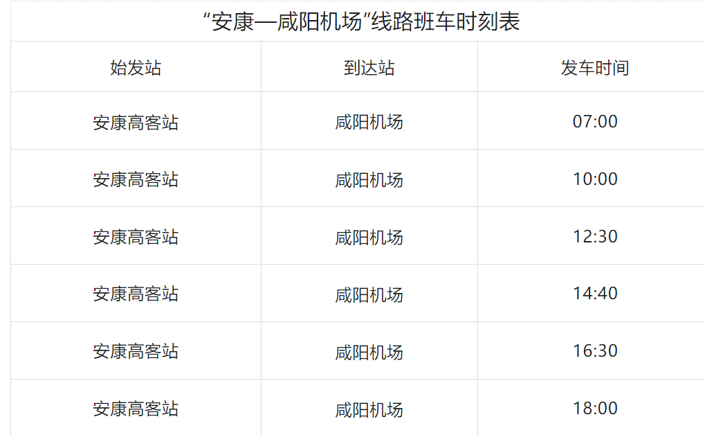 明日起,“安康—咸陽機(jī)場”客運(yùn)線路發(fā)車時(shí)間調(diào)整