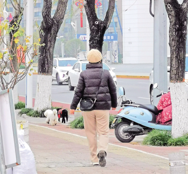 12月21日,在安康大劇院附近,有市民遛狗不牽繩。記者 潘潤生 攝