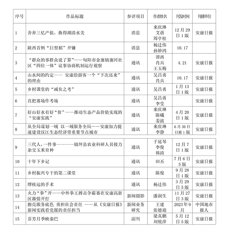 安康日報社參評“2023年度陜西新聞獎”作品公示