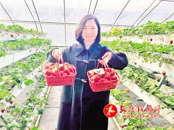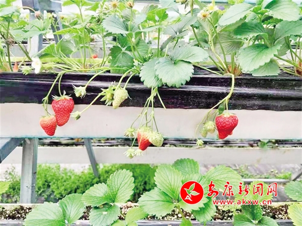 “‘高架草莓’不僅節(jié)約人力,能讓大家冬天也能吃到鮮甜可口的草莓,也不用擔(dān)心降溫、大雪等天氣影響。懸空種植還方便工人以及游客進(jìn)行采摘,許多周邊群眾慕名而來,體驗‘開心農(nóng)場’?!眻@區(qū)技術(shù)員曹峰說。