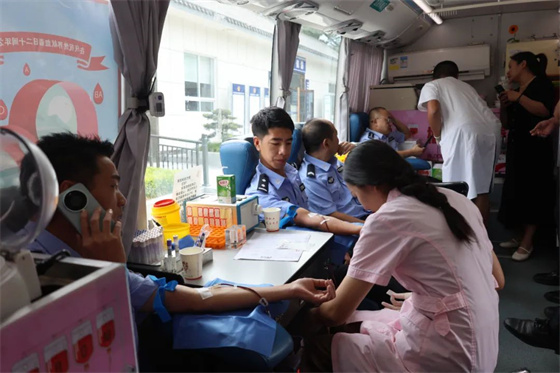在獻(xiàn)血現(xiàn)場(chǎng),民警輔警在工作人員的引導(dǎo)下有序進(jìn)行獻(xiàn)血登記表的填寫(xiě)、健康征詢(xún)、血液初篩、采血等流程。一次次挽袖,一袋袋熱血,傳遞出社會(huì)的正能量與濃濃的愛(ài)心。全局民警輔警積極響應(yīng)熱情參與,以實(shí)際行動(dòng)踐行無(wú)私奉獻(xiàn)的精神,營(yíng)造“獻(xiàn)血救人,助人利己”的良好社會(huì)氛圍。
