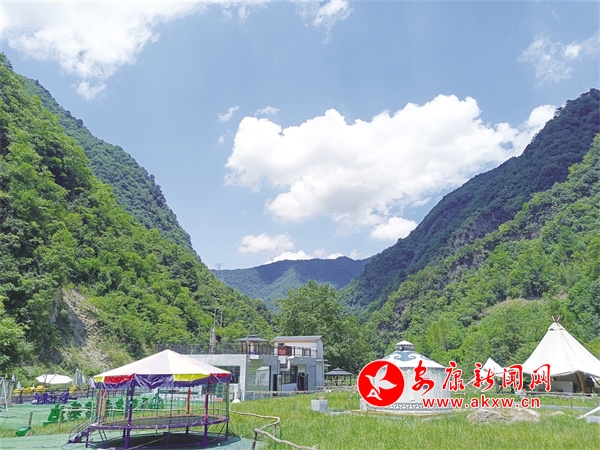立秋這天,為了避暑,我和友人結(jié)伴,頂著38度的高溫從安康城區(qū)出發(fā),經(jīng)平鎮(zhèn)高速公路,一個半小時到達干洲河上游的五眼泉露營基地,剛好正午12點半,而這里的室外溫度只有22度。打開車門,山風一吹,一身暑氣頓時退去,隨之而來的是山風中的樹木清香、山花濃香,以及河風吹來的溫潤之感。
