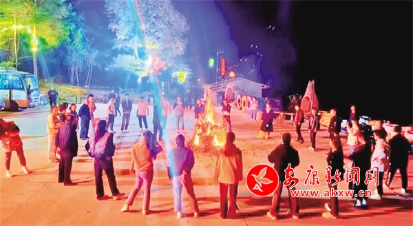 夜幕降臨,篝火熊熊燃起,當(dāng)動感的音樂響起,游客們手拉手圍成圈,繞著篝火載歌載舞,感受著熱烈的秋日浪漫,這一場景也成為此次活動的一大亮點(diǎn)。