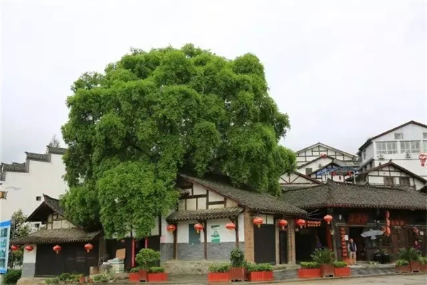 隨著人流,我們遠遠地就看到后柳水鄉(xiāng)最著名的那棵千年皂角樹,清嘉慶皇帝曾御筆親題“屋包樹”三個大字。這棵"屋包樹"距今有1600多年的歷史,它從房中長出,伸出屋頂后傘蓋全屋,濃蔭蔽日,高約16米,樹冠直徑18米,樹干需3人才能合抱,天南海北的游客在這棵樹前紛紛駐足,感嘆這奇特的景觀,紛紛拍照留念。