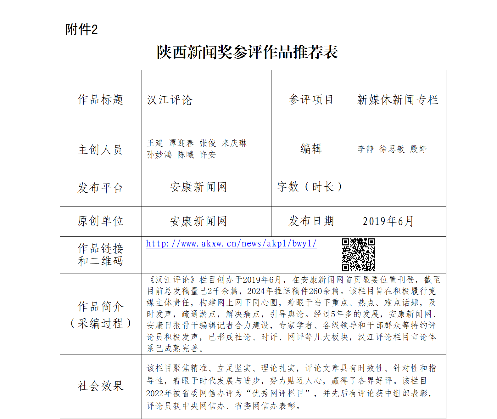 安康日報(bào)社參評“2024年度陜西新聞獎(jiǎng)融合報(bào)道、應(yīng)用創(chuàng)新和新媒體新聞專欄”作品公示