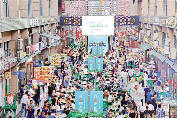 “五一”期間,紫陽縣紫邑新城美食街區(qū)開展了特色文旅活動,吸引游客紛至沓來。 鄭曉虎 攝