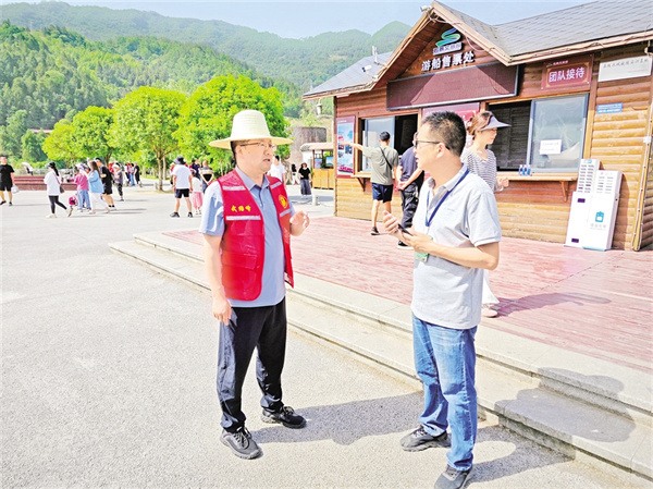 游客需要什么,黨員就做什么!今年“五一”期間,全鎮(zhèn)設(shè)立4個(gè)固定服務(wù)崗、30個(gè)流動服務(wù)點(diǎn),配備2支摩托巡邏隊(duì)和200名志愿者,形成“點(diǎn)線面”結(jié)合的服務(wù)網(wǎng)絡(luò)。同時(shí)運(yùn)用“智慧監(jiān)管云平臺”,整合無人機(jī)巡查、AI人流監(jiān)測等技術(shù)手段,實(shí)現(xiàn)景區(qū)客流精準(zhǔn)調(diào)控,贏得了廣大游客的爭相稱贊。