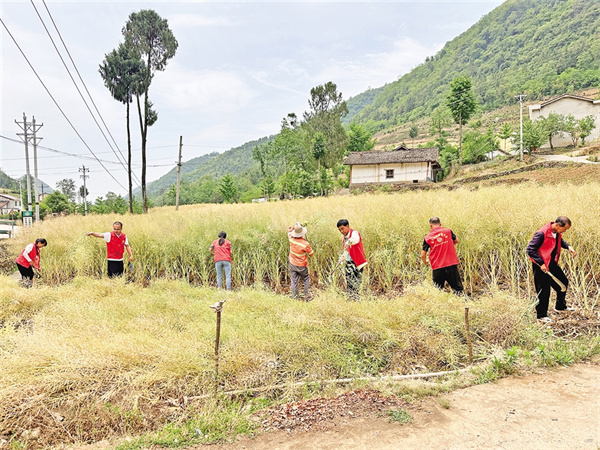 五月的石泉縣熨斗鎮(zhèn),熱浪翻滾,菜籽飄香,金黃的油菜地與綠油油的秧苗交織成景,村民們搶抓晴好天氣忙收割、搶晾曬、備播種。