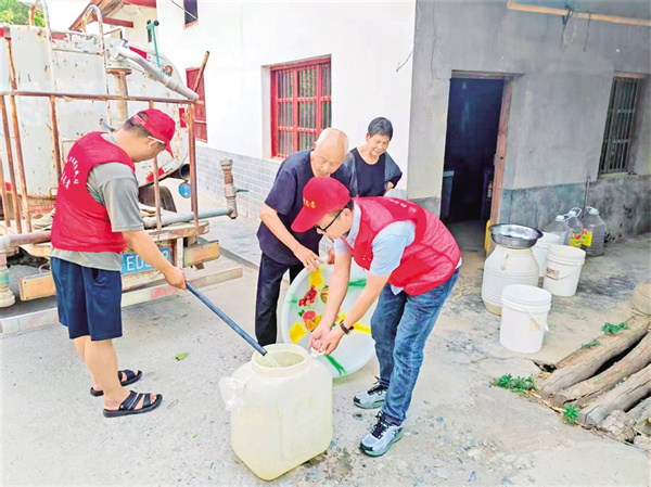 送水之路充滿艱辛。對于地勢高、車輛難以抵達的區(qū)域,李鵬和其他志愿者們肩挑手提,用最原始的方式將生活用水送到村民家中?!巴迌簜儼。銈兲焯旆皆綆X給我這老太婆送水,我才有水吃!” 家住和平村七組的70多歲獨居老人胡宗鳳,緊緊拉著志愿者的手。送水工作日復一日,讓志愿者們手上磨出厚厚的繭子,有的肩膀也被磨破了皮。正是這份堅守與付出,保障了村民的基本生活用水。