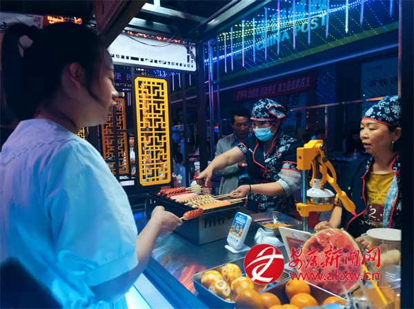 6月15日晚上,夜色漸深。寧陜縣濱河公園的小吃街變得熱鬧非凡。30家攤位整齊有序地排列開(kāi)來(lái),洋芋糍粑軟糯香甜,玉米鍋巴酥脆可口,麻辣豆腐干鮮香四溢,特色美食的香氣在空氣中彌漫開(kāi)來(lái),市民們絡(luò)繹不絕、穿梭其間。