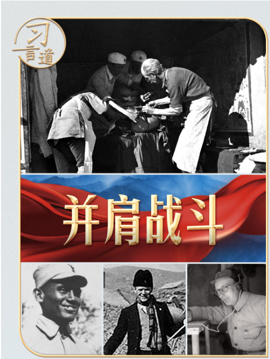 印度醫(yī)生柯棣華、法國醫(yī)生貝熙葉、德國人約翰·拉貝、丹麥人辛德貝格、英國人林邁可、國際主義戰(zhàn)士漢斯·希伯、蘇聯(lián)飛行大隊(duì)長庫里申科、美國“飛虎隊(duì)”......他們的事跡,習(xí)近平總書記曾多次動(dòng)情講述。總書記還在國內(nèi)外重要場合為曾幫助和支持中國抗戰(zhàn)的國際友人頒獎(jiǎng),向他們致敬。