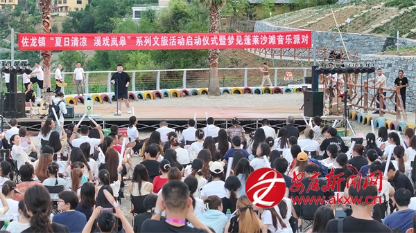 佐龍鎮(zhèn)黨委、政府因勢(shì)利導(dǎo),開(kāi)發(fā)了蓬萊仙境景區(qū)及馬宗村民宿集群,又把河灣變成了露天公共文化場(chǎng)所。他們舉辦的沙灘音樂(lè)節(jié),邀請(qǐng)本地的音樂(lè)舞蹈愛(ài)好者駐場(chǎng),鼓勵(lì)當(dāng)?shù)厝罕?、外?lái)游客參與,以參與活動(dòng)、宣傳活動(dòng)的數(shù)量打卡積分,兌換文創(chuàng)產(chǎn)品和文化禮品。