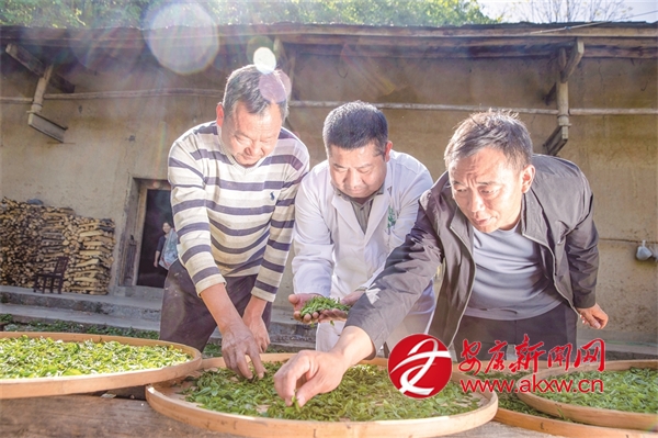 “十四五”期間,我市持續(xù)推進茶產(chǎn)業(yè)發(fā)展,努力實現(xiàn)茶產(chǎn)業(yè)“四時有收”。圖為紫陽白茶非遺制作技藝代表性傳承人在高橋鎮(zhèn)裴壩村,向茶農(nóng)推廣紫陽白茶非遺制作技藝。 李勝璋 攝?