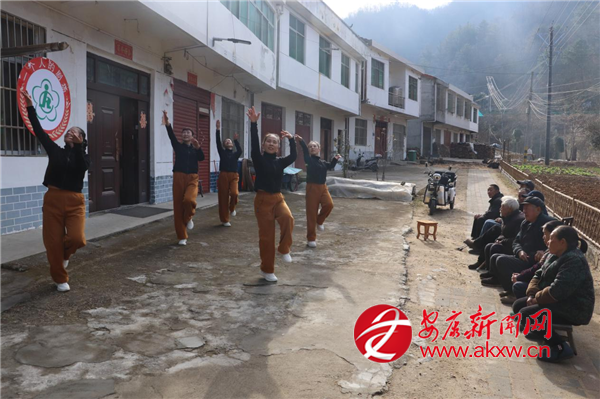 在寧陜縣筒車灣鎮(zhèn)筒車灣社區(qū)白果樹組一個(gè)小地名叫四塊田的地方,冬日的清晨正被歡快的旋律喚醒,李友發(fā)與幾位老人坐在院壩邊看得格外投入。