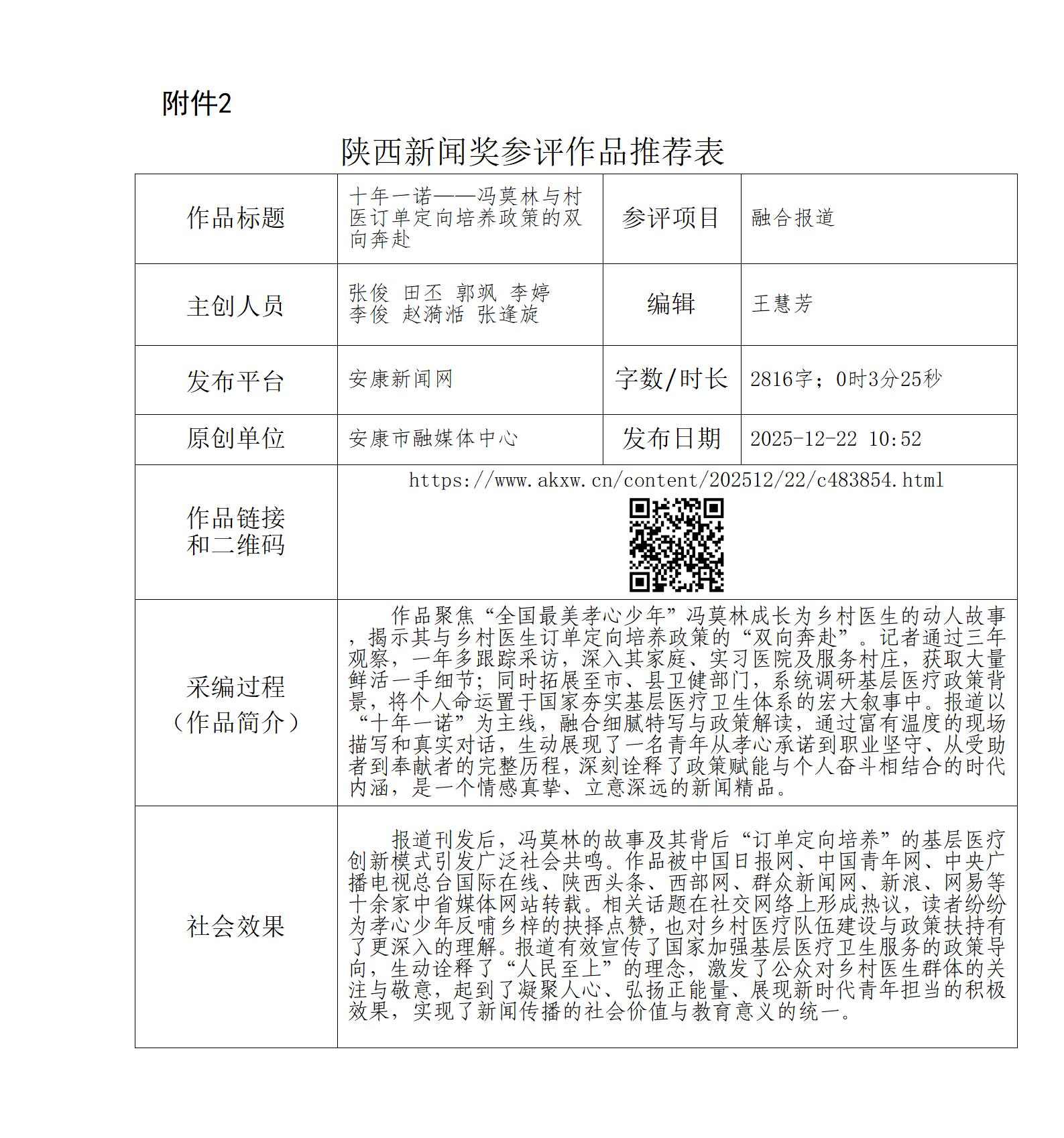 安康市融媒體中心關(guān)于2025年度陜西新聞獎融合傳播類參評作品的公示