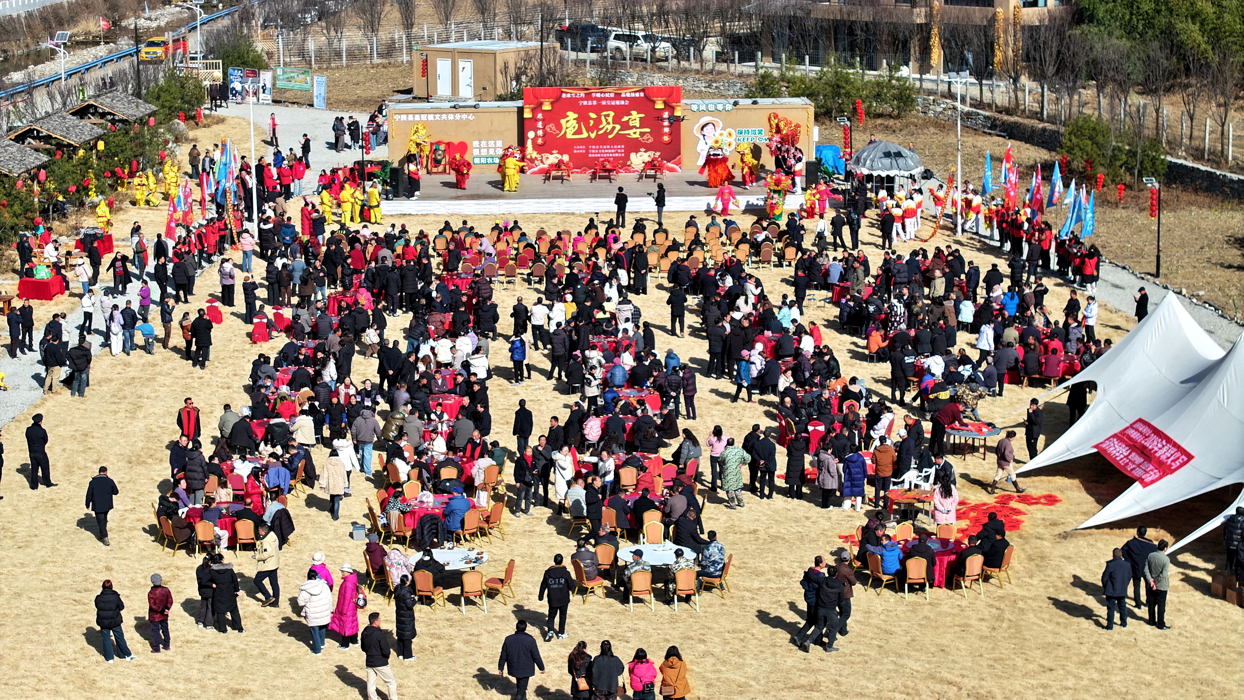 文化賦能是寧陜冬春旅游的核心亮點。1月16日,皇冠鎮(zhèn)朝陽農(nóng)場里首屆皇冠庖湯會熱鬧開席,《二嫂夸皇冠》的表演點燃現(xiàn)場氛圍,舞獅、彩船等傳統(tǒng)民俗輪番上演,莊重的祭天儀式傳遞著農(nóng)耕文明的厚重?;顒蝇F(xiàn)場墨香陣陣,鄉(xiāng)土菜肴香氣四溢?!坝玫亩际乾F(xiàn)殺黑豬,味道特別地道?!蓖獾赜慰徒抠澆唤^口,西安游客葉格芳也直言:“專程前來,不虛此行?!贝舜吴覝珪参慰?300余人,實現(xiàn)旅游消費30萬元。