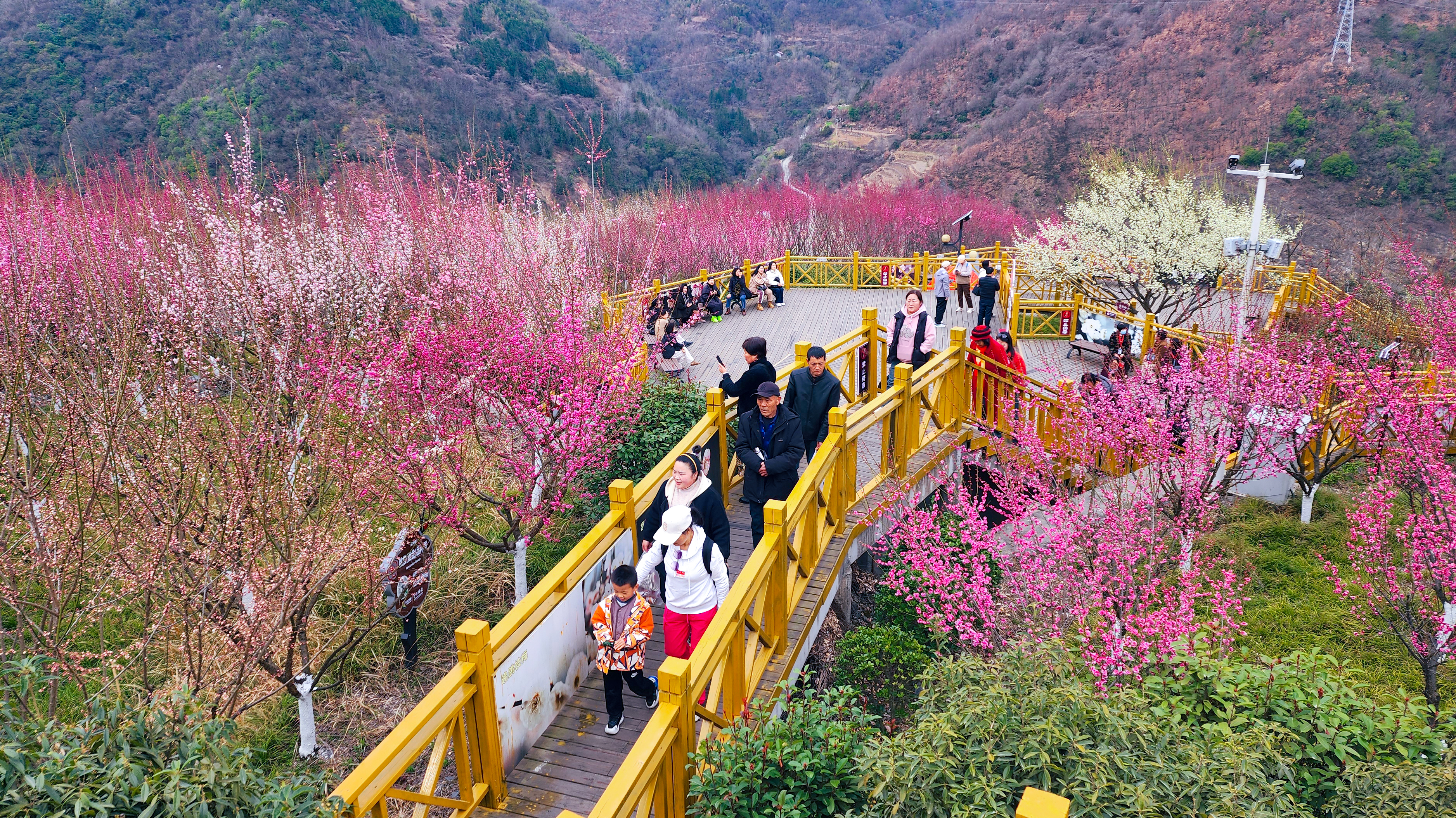 近日,寧陜縣梅子鎮(zhèn)子午梅苑的梅花凌寒盛放。百畝花海粉白相間、蔚為壯觀,吸引眾多游客聞香而至。(董長松 攝)