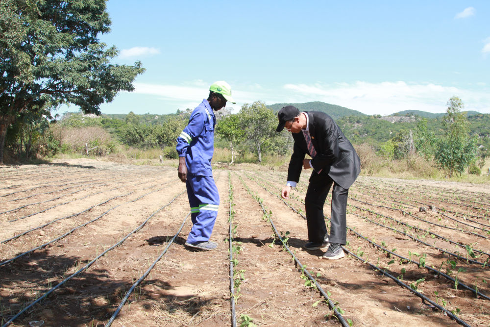 2025年5月14日,在位于津巴布韋中馬紹納蘭省的中國(guó)—津巴布韋農(nóng)業(yè)合作示范村,中方農(nóng)業(yè)專家指導(dǎo)當(dāng)?shù)卮迕?。新華社發(fā)(塔法拉 攝)