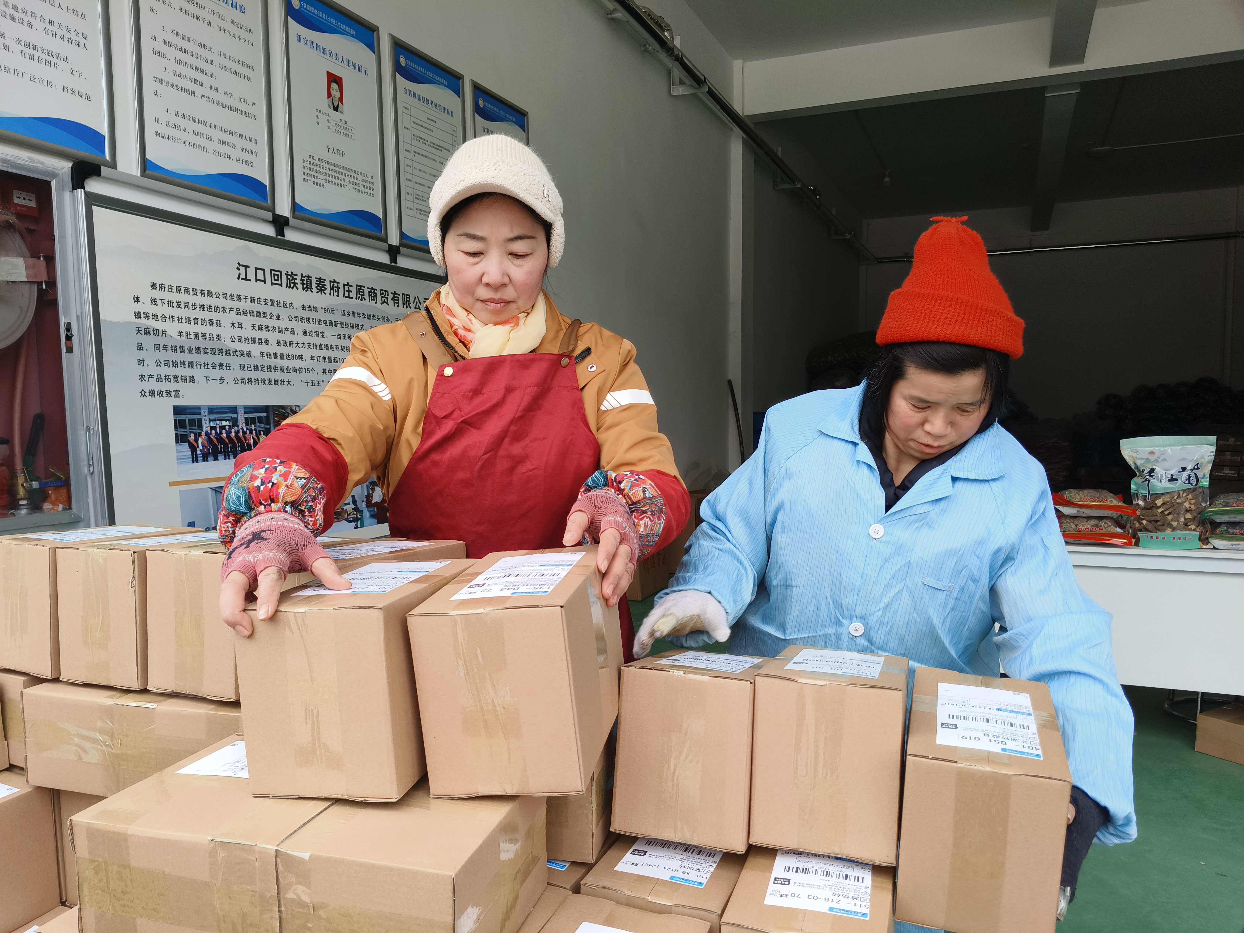 春節(jié)前夕,寧陜縣江口回族鎮(zhèn)秦府莊原商貿(mào)有限公司內(nèi)一片繁忙,工人們忙著打包、發(fā)貨。近期,寧陜山珍線上銷量持續(xù)走高,日均發(fā)貨約700單。(劉長兵 攝