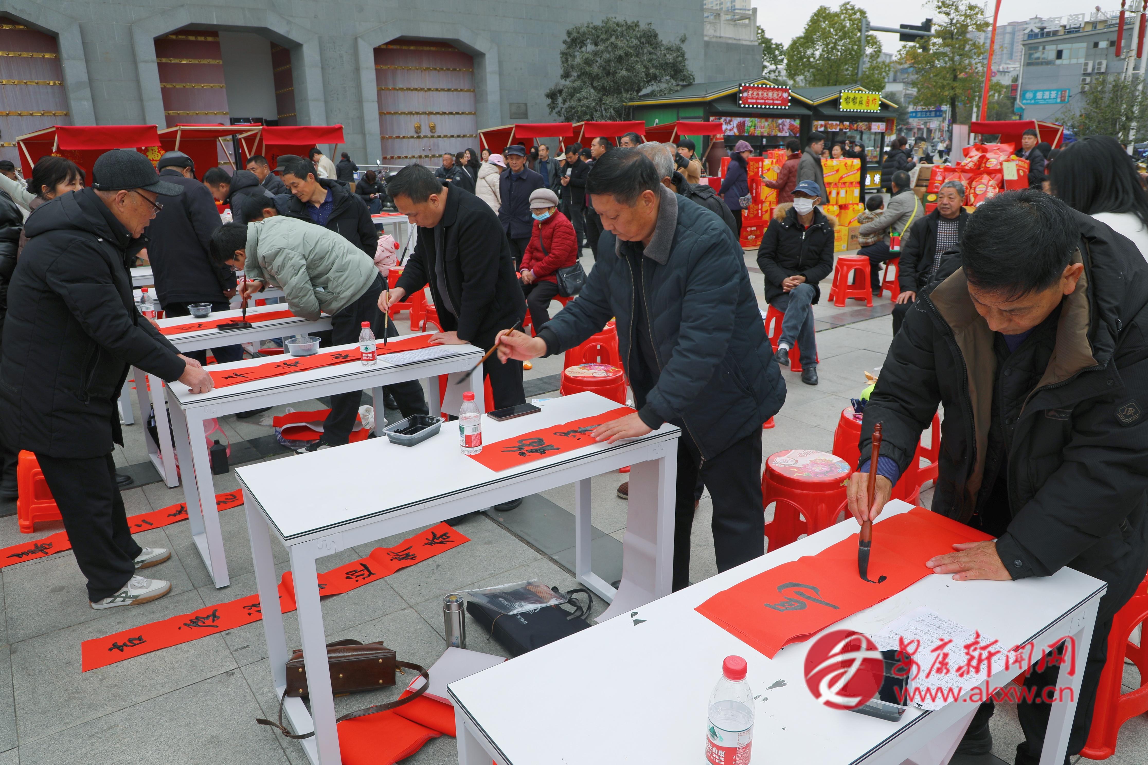 活動開場,鏗鏘的舞獅表演點燃全場熱情,漢調(diào)二黃盡顯秦巴韻味,嘹亮的歌唱與精妙的川劇變臉輪番上演,獨具特色的文藝演出贏得市民群眾陣陣掌聲,其間的抽獎活動與趣味娛樂環(huán)節(jié),吸引市民沉浸式參與其中,更是將節(jié)日的歡樂氛圍推向高潮。另一邊,市文化產(chǎn)業(yè)協(xié)會的書法家們揮毫潑墨,一副副喜慶的大紅春聯(lián)、一張張吉祥的福字帶著墨香送到群眾手中。