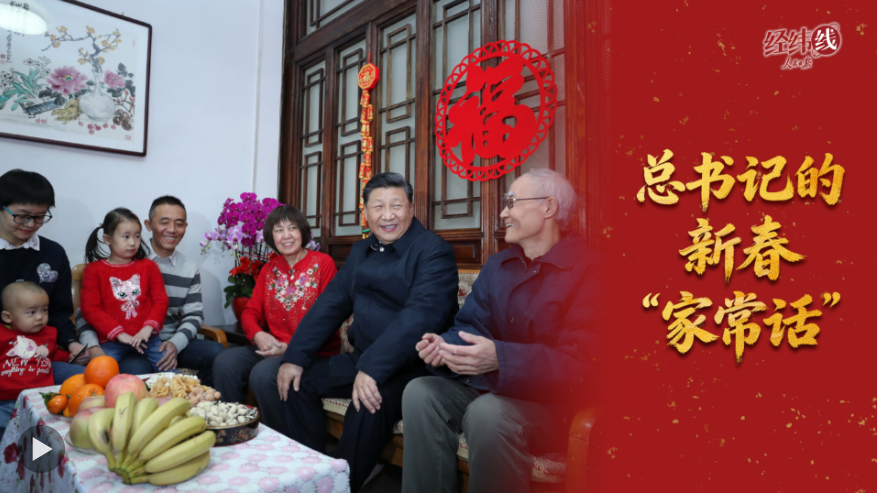 新春將至,年味漸濃,習(xí)近平總書記總是同人民群眾在一起,看年貨備得齊不齊,問(wèn)家庭收入怎么樣,向海內(nèi)外中華兒女送祝?!凹页T挕崩镆娚钋?。