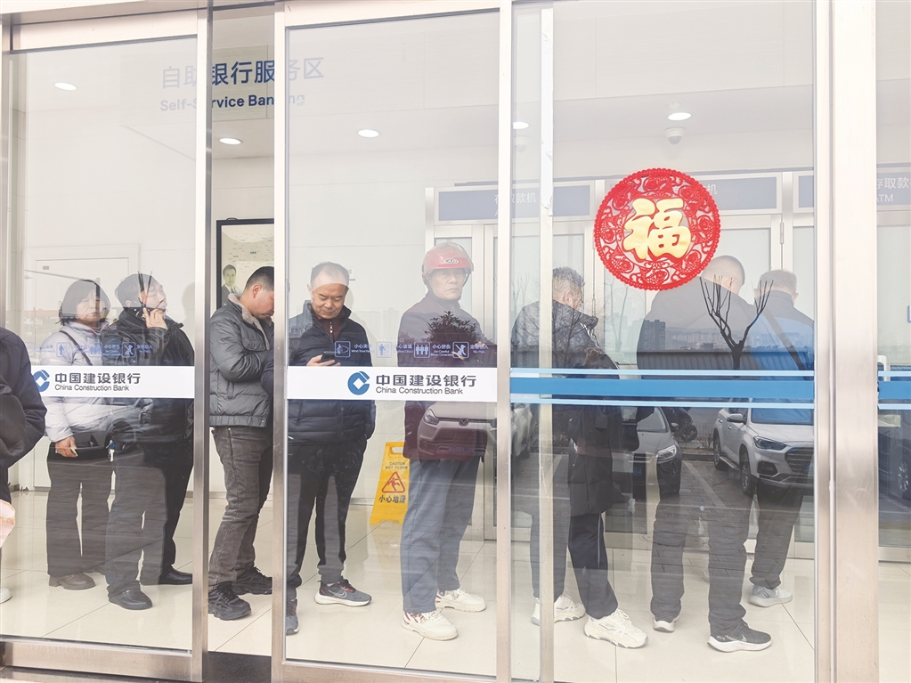 ④ 2月15日,漢濱區(qū)江北大道一家24小時(shí)自助銀行里,取錢(qián)的市民排起了長(zhǎng)隊(duì)。秦 英 攝