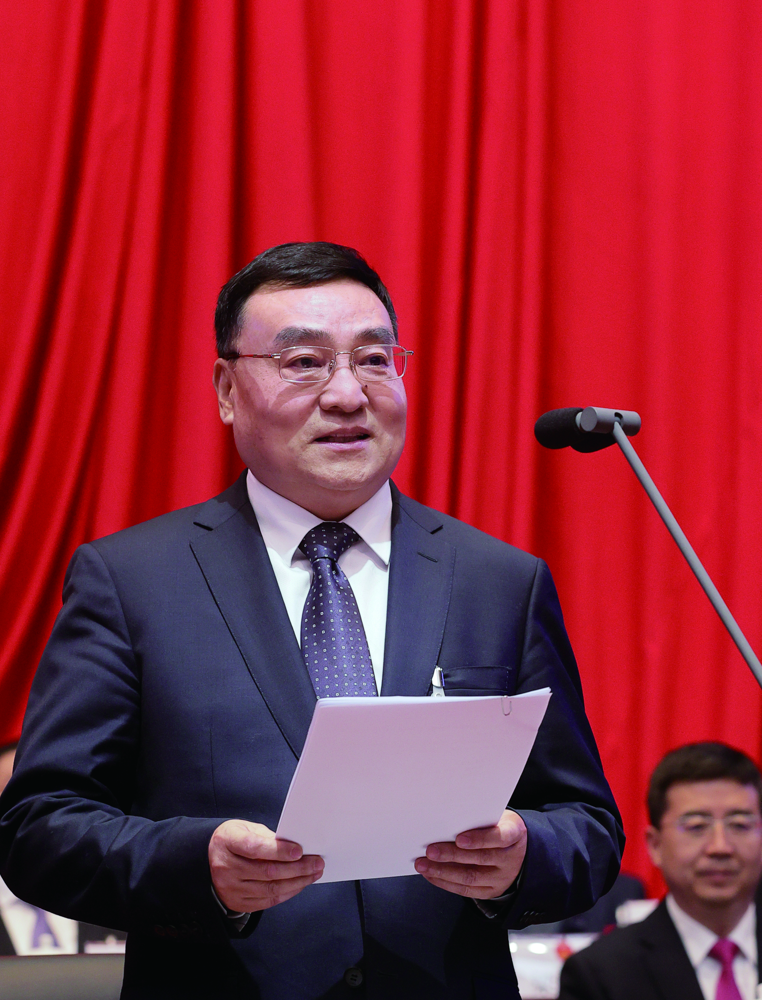 代市長(zhǎng)張小平代表市人民政府向大會(huì)作政府工作報(bào)告。記者 潘潤(rùn)生 攝