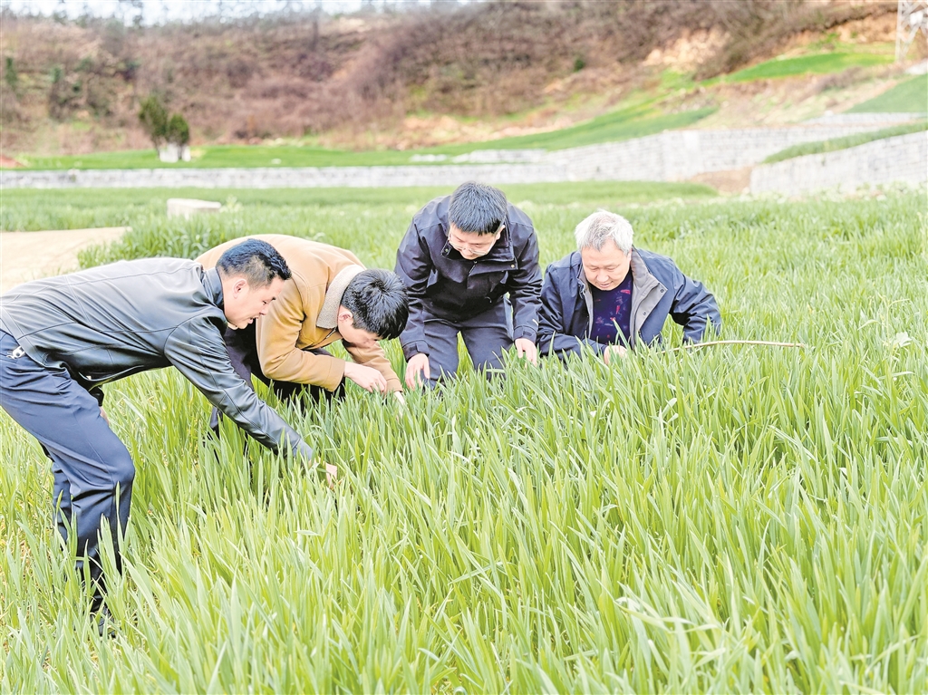 “這塊墑情不錯(cuò),但那邊靠坡的地有點(diǎn)干,施肥得區(qū)別對(duì)待。”2月24日,漢濱區(qū)農(nóng)業(yè)農(nóng)村局聯(lián)合相關(guān)部門組建技術(shù)服務(wù)隊(duì),分赴各糧食生產(chǎn)重點(diǎn)鎮(zhèn)。汪德義帶著隊(duì)員們逐塊田排查,建立管理臺(tái)賬,針對(duì)不同苗情、墑情精準(zhǔn)開具“個(gè)性化處方”。農(nóng)戶圍在他身邊,聽得認(rèn)真,問得仔細(xì)。