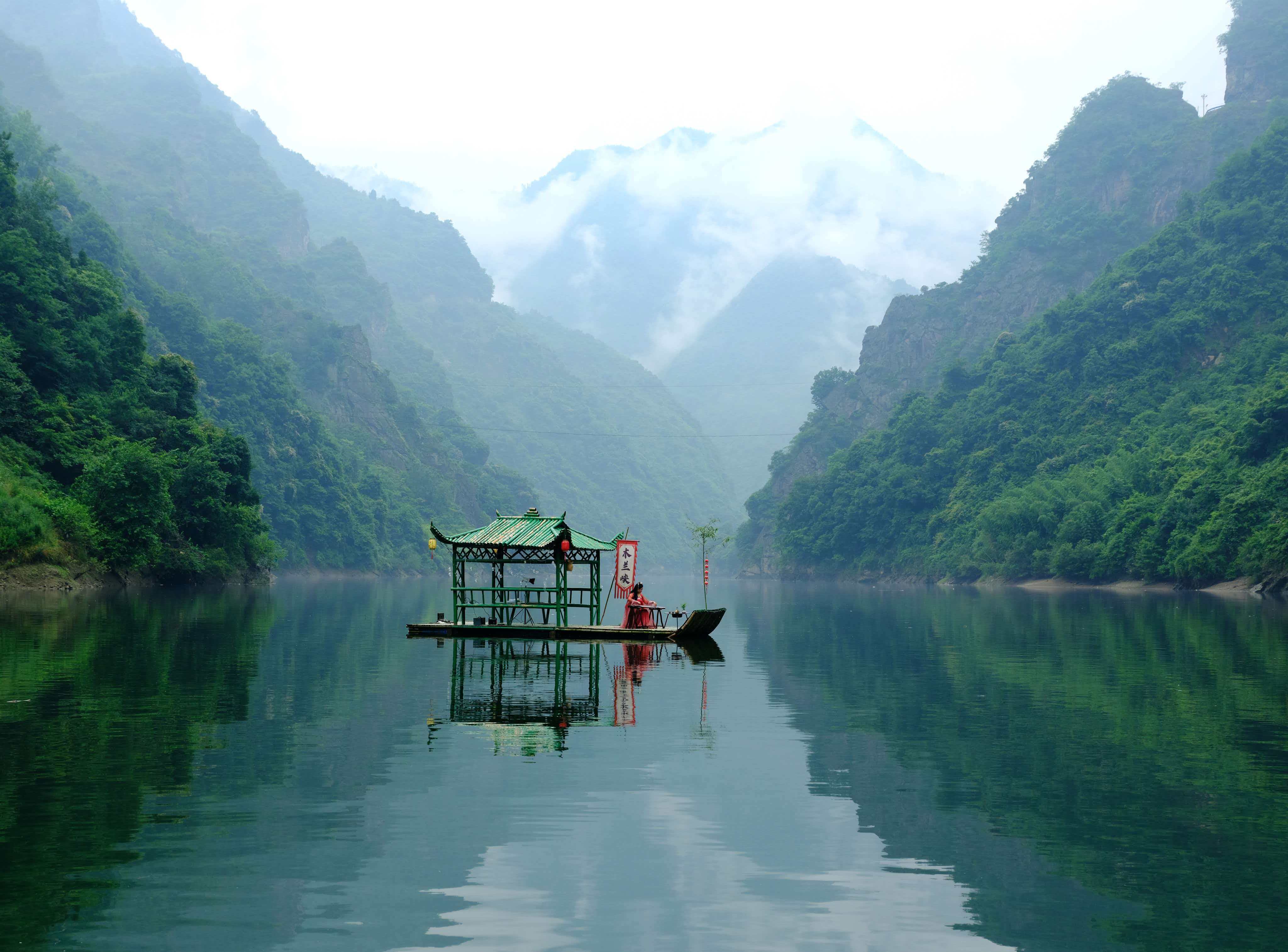 2012年夏天,我陪客人走進毛壩鎮(zhèn)。朋友做向?qū)?,這才第一次見識了木蘭峽,紫陽的深山里,原來藏著這般景致。峽水幽幽,綠得深沉,不起一絲波瀾。小船行在水上,像是劃破了一匹綠綢子;又像是根本沒動,只靜靜地浮著,浮在一整個下午的光陰里。兩岸奇峰默然對峙,滿坡蓊蓊郁郁,盡是些叫不出名字的樹木。偶爾有野山羊從崖邊下來,到峽邊低頭喝水,見了人也不是很怕。峽的盡頭,一段古纖道斜斜地臥在峽邊,石頭上還留著當(dāng)年的鑿痕。不遠處立著一塊清代道光年間的石碑,上面的字跡雖已模糊,卻仿佛還在那里,低聲訴說著從前的熱鬧。