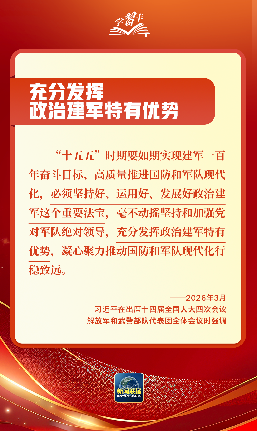 3月5日至7日,習(xí)近平總書記先后參加江蘇代表團(tuán)審議、看望全國政協(xié)委員、出席解放軍和武警部隊(duì)代表團(tuán)全體會(huì)議,圍繞經(jīng)濟(jì)大省發(fā)展、健康中國建設(shè)、政治建軍等重大議題作出深刻闡釋、提出明確要求,為“十五五”開好局、起好步提供科學(xué)指引。