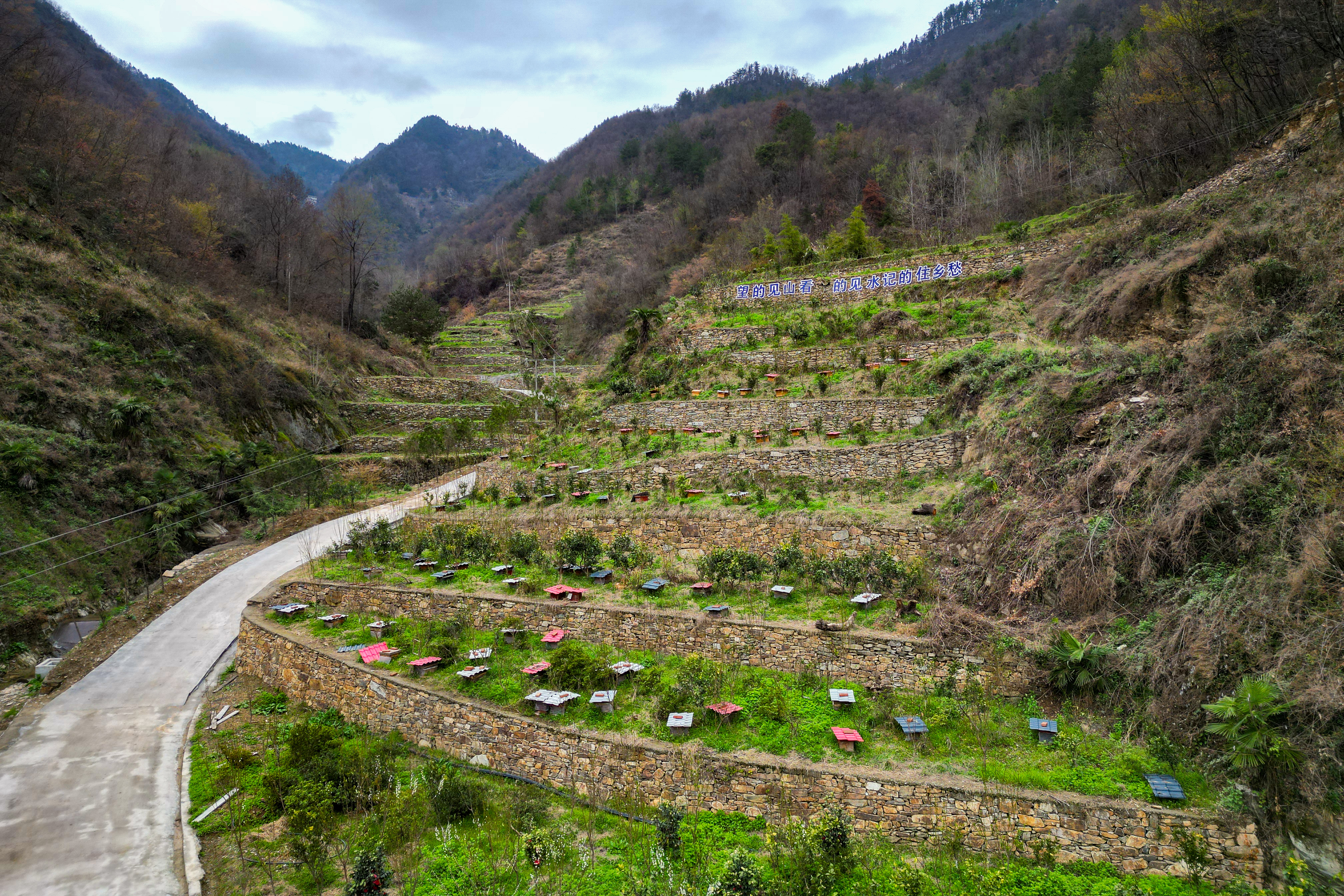 如今,在各級政府的關心和支持下,鳳凰山已煥然一新:護坡堅固,梯田平整,石階通頂;紅豆杉亭亭玉立,蜂糖李花朵盈枝;7口冷水魚塘錯落有致,新疆阿勒泰冷水魚、美國紅黑鱒等優(yōu)質魚種在水中暢游;300箱蜂群花間采蜜;山泉水廠、蜂蜜水廠建設完工,一座集生態(tài)、觀光、種植于一體的植物公園在鳳凰山里悄然崛起。