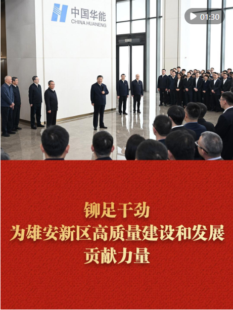 3月23日,習(xí)近平總書記來到河北雄安新區(qū),察看啟動(dòng)區(qū)建設(shè)進(jìn)展,考察中國(guó)華能集團(tuán)有限公司,了解雄安新區(qū)建設(shè)發(fā)展情況,親切慰問入駐和在建疏解單位干部職工代表。