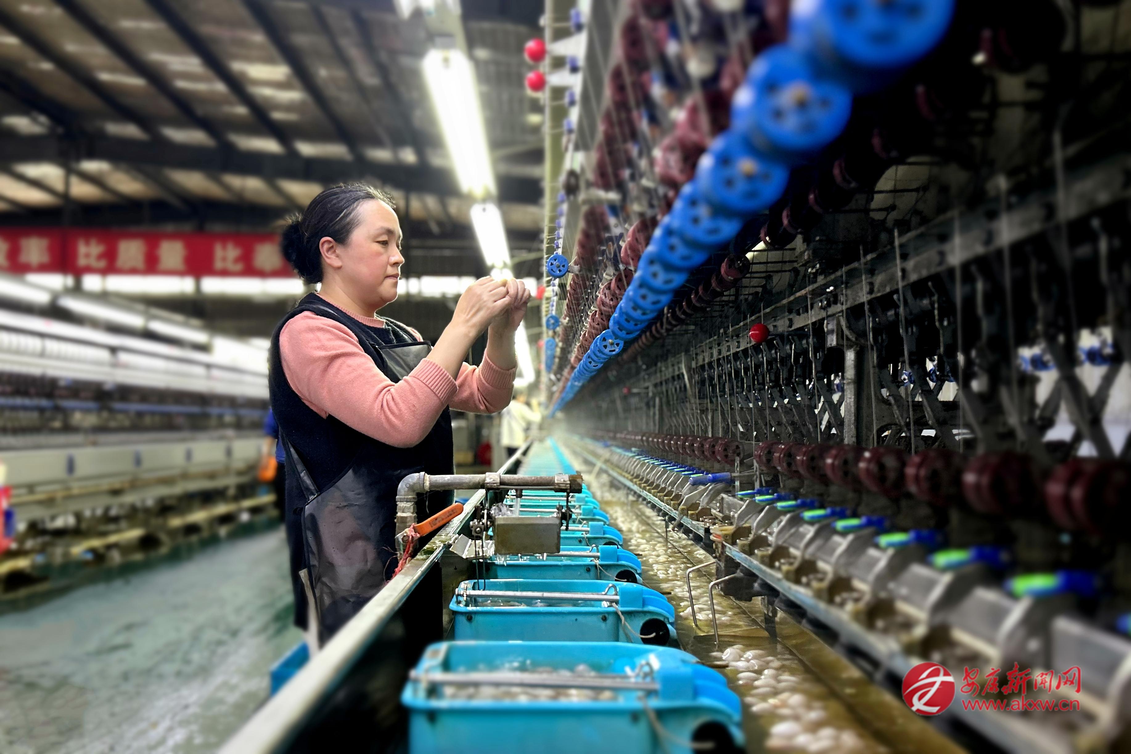 “今年國內(nèi)高端家紡市場(chǎng)需求旺盛,訂單一直很充足?!逼髽I(yè)負(fù)責(zé)人孫浩勇介紹,依托本地優(yōu)質(zhì)蠶繭,企業(yè)滿負(fù)荷生產(chǎn)。同時(shí),通過“企業(yè)+合作社+農(nóng)戶”利益聯(lián)結(jié)機(jī)制,天成絲業(yè)與數(shù)千戶蠶農(nóng)簽訂保底收購協(xié)議,提供全流程服務(wù),實(shí)現(xiàn)企業(yè)增效、蠶農(nóng)增收。