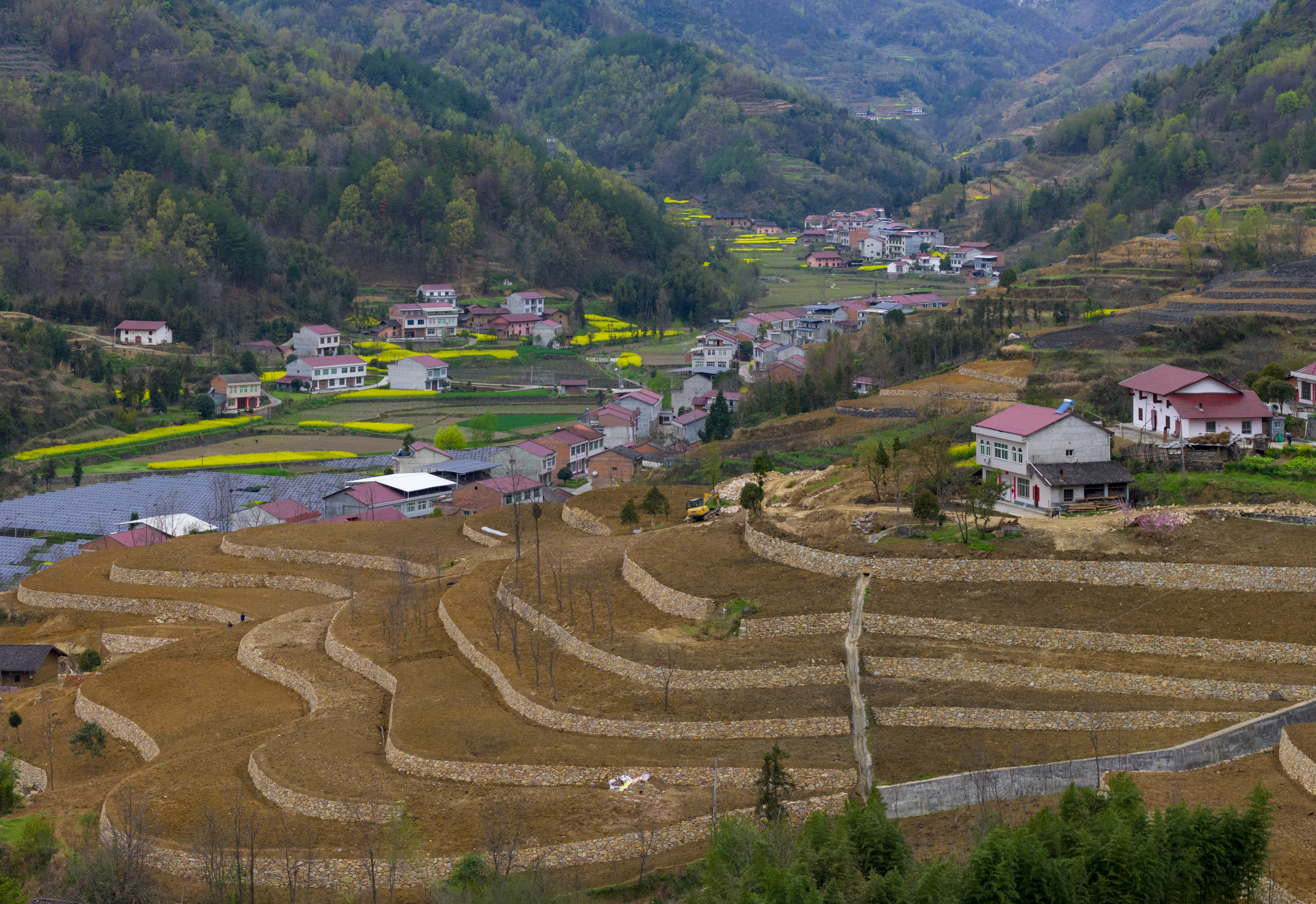漢濱區(qū)大河鎮(zhèn)搶抓春耕有利時機,組織實施坡改梯標準化農田建設,讓山間的“石坎坎兒”成為穩(wěn)定糧油增收的“金碗碗兒”。圖為該鎮(zhèn)興紅村連片320畝標準農田建設一角。 陳均威 攝