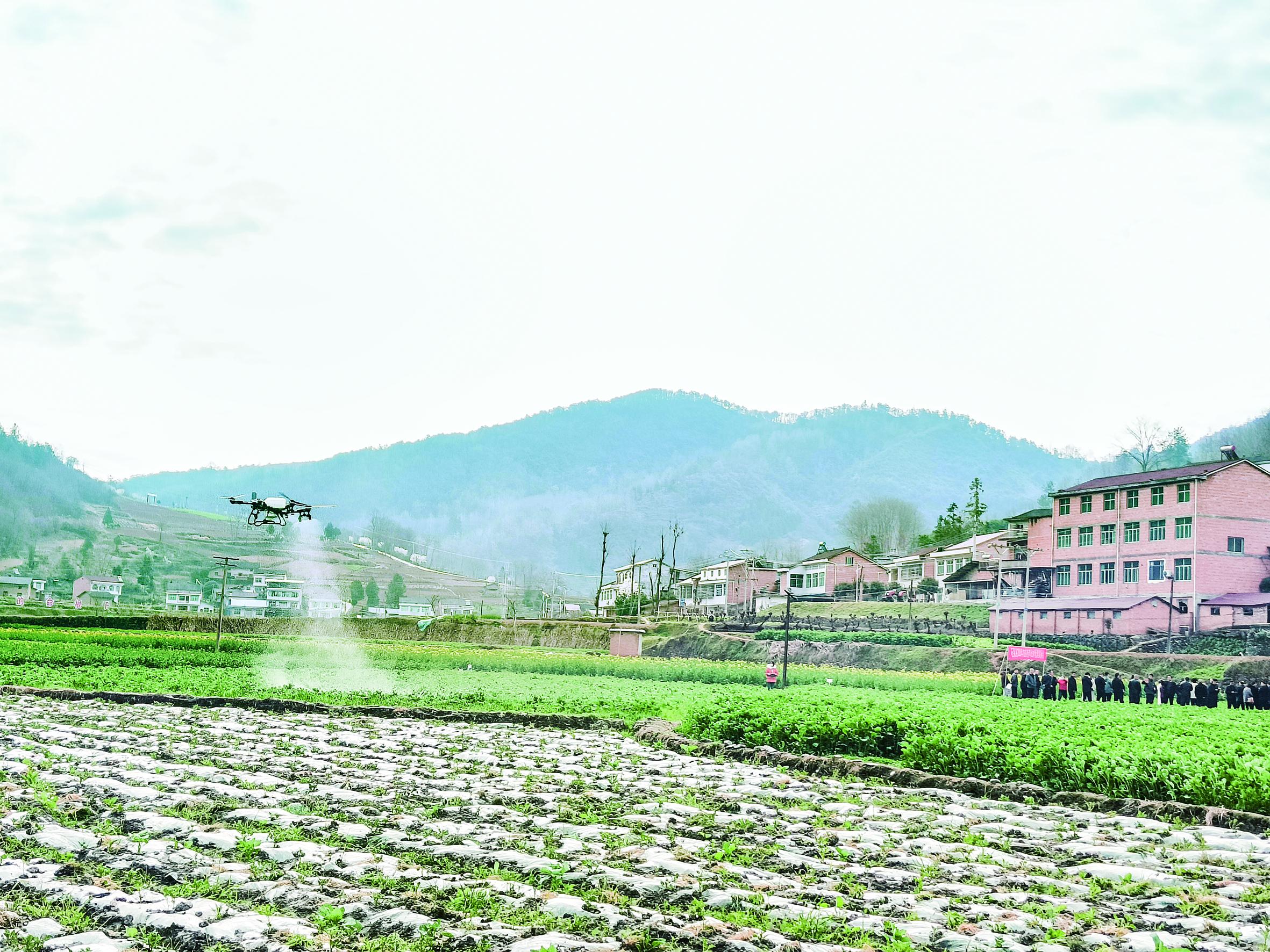 3月12日,石泉縣中池鎮(zhèn)開展第三十四屆“科技之春”宣傳月系列活動。圖為植保無人機飛防作業(yè)演示。
