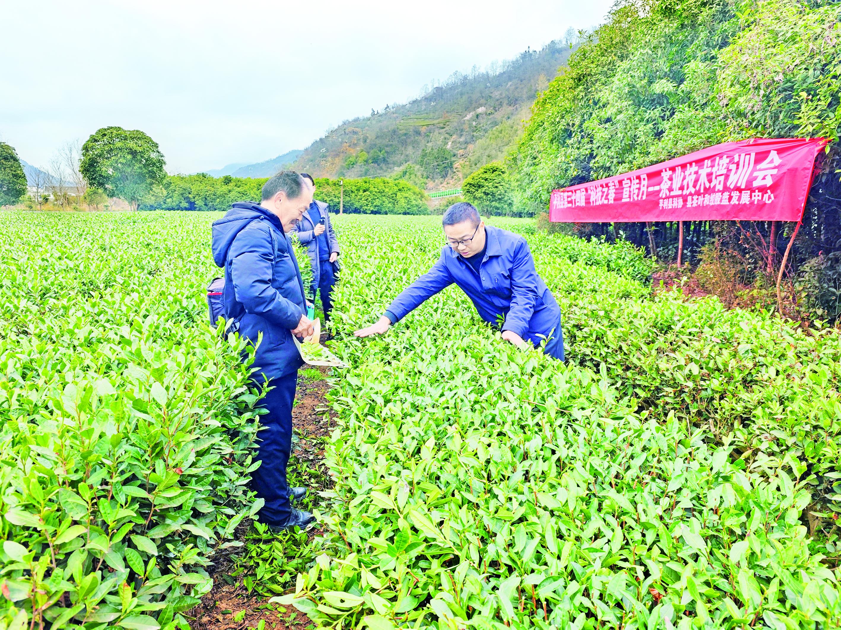 2月26日,平利縣開展茶葉技術培訓。圖為專家在茶園指導采茶技術。