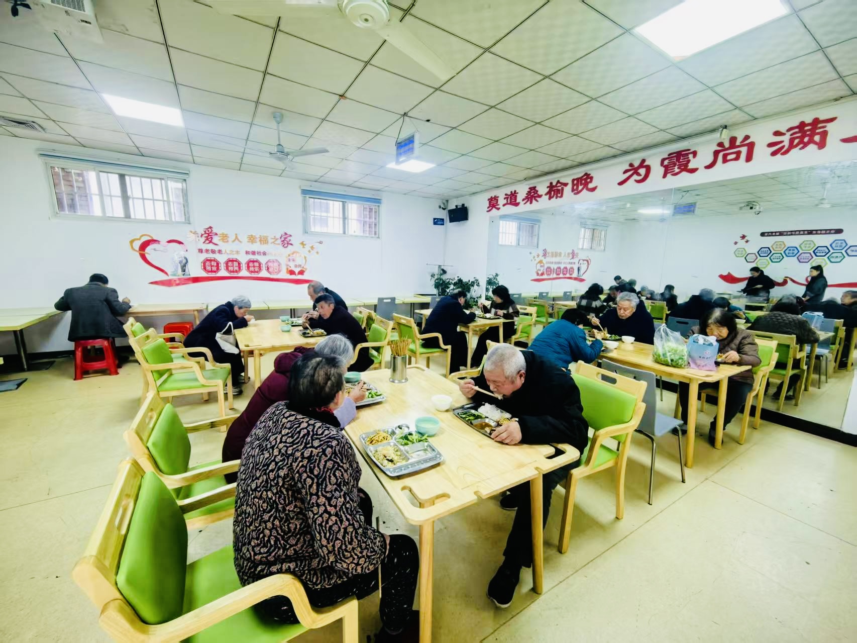 為了讓老人吃得舒心、過得安心,社區(qū)依托老年人日間照料中心,專門騰出約300平方米的空間打造孝義食堂,合理規(guī)劃廚房、餐廳,配套建成老年文化室、休閑娛樂室、健康保健室、針灸理療按摩室,搭建了應(yīng)急救助服務(wù)平臺,形成“就餐+康養(yǎng)+休閑+應(yīng)急”的一站式服務(wù)體系,給老人提供餐前餐后全方位的貼心照顧。