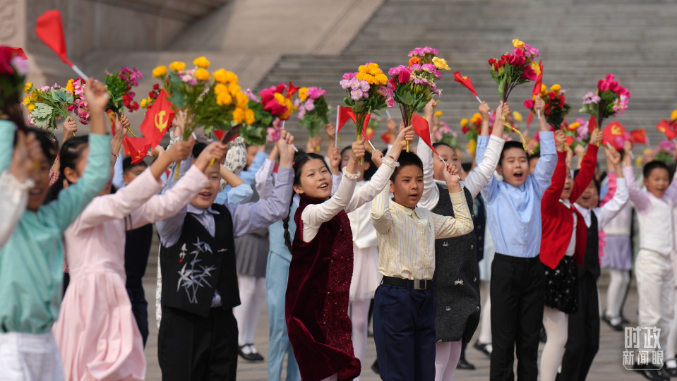 △歡迎儀式上的少年兒童。(總臺記者李晉拍攝)